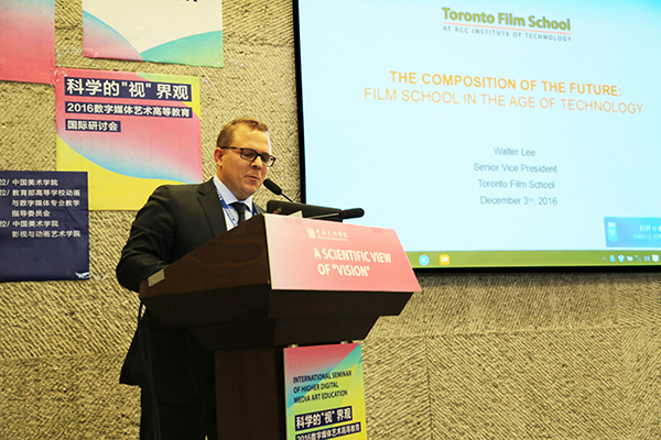 12月3日,中国美术学院影视与动画艺术学院主办的“科学的‘视’界观—2016数字媒体艺术高等教育国际研讨会”邀请了来自英国伯明翰大学、瑞典皇家理工学院、伦敦艺术大学中央圣马丁学院、加拿大多伦多电影学院、中央美术学院、清华大学美术学院、北京大学、浙江大学、广州美术学院、四川美术学院、南京艺术学院、北京电影学院、鲁迅美术学院、天津美术学院、北京邮电大学、北京服装学院、杭州电子科技大学、浙江传媒学院、浙江工业大学、浙江工商大学、浙江理工大学、杭州师范大学、福建工程大学、厦门理工学院等国内外数字媒体艺术专业相关院校的专家学者,围绕着在科学化时代的语境下,如何明晰并践行高校数字媒体艺术领域的教育方向与转型这一主题,在中国美术学院象山校区水岸山居大型会议厅召开了国际学术研讨会。会议由网络与游戏系主任崔晨旸教授主持,中国美术学院党委副书记刘正教授致辞。