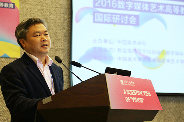 在2016数字媒体艺术高等教育国际研讨会开幕式上致辞。