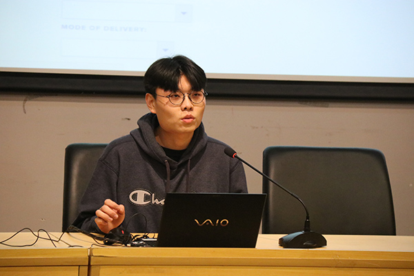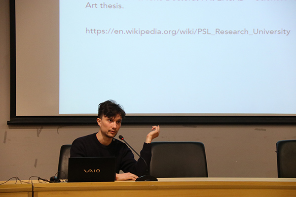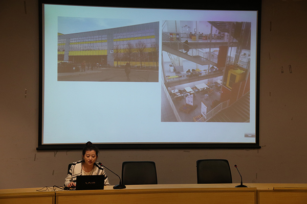 来自德国汉堡美术学院的Wonek Lee、法国巴黎国立高等装饰艺术学院的Corentin Marcel、法国莱茵高等艺术学院的Maeva Rouquette等三名国外来华交换生,通过短片和PPT带领大家领略了三所艺术院校各有特色校园环境与文化特点,同时介绍所在院校研究生培养模式、学科学制、课程设置、专业内涵以及学生的创作作品。