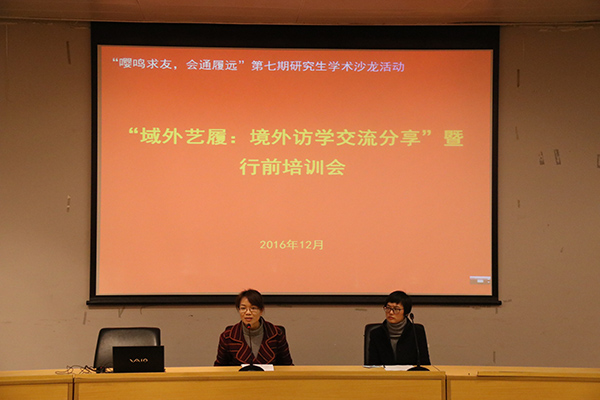 活动中,外事处副处长王颖颖介绍了我院与国外艺术院校的校际合作基本概况、公派国(境)外访学项目以及优秀项目遴选资助的有关情况,并就申报对象、有关要求、工作流程等作了详细解答。随后,王颖颖、周艳向2017年春季推荐公派赴境外学习学生作了行前培训,对于同学们做好思想准备、周密计划、学籍管理、导学关系、学分转换、签证办理、行程安全、境外事务联络机制等相关事宜进行了全面细致的指导,要求大家带着计划访学、带着问题研修、带着成果返校,切实做到“安全第一、做好攻略、爱惜身份、如期返校、强化成果”。