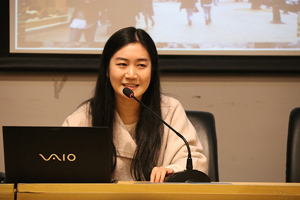 来自德国汉堡美术学院的Wonek Lee、法国巴黎国立高等装饰艺术学院的Corentin Marcel、法国莱茵高等艺术学院的Maeva Rouquette等三名国外来华交换生,通过短片和PPT带领大家领略了三所艺术院校各有特色校园环境与文化特点,同时介绍所在院校研究生培养模式、学科学制、课程设置、专业内涵以及学生的创作作品。