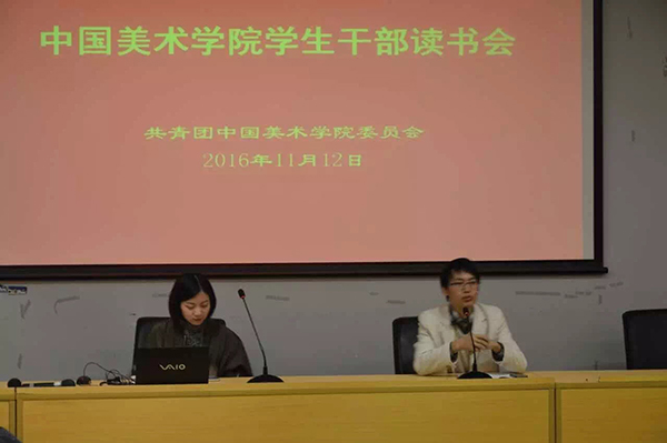本次读书会共包括了四方面的内容:一是《负丹青年华》校史剧专场,让同学们通过了解重要校史人物吴冠中先生的求学经历,更加坚定在当下美好环境中刻苦学习专业的信心。二是我院油画系退休教授秦大虎老师《文艺创作的人民性》主题报告。秦大虎教授在报告中讲到“人民性”,是坚持艺术为人民服务、为社会主义服务的理念。艺术需要叙写民众的思想感情,反映人民的利益诉求,这不仅是文艺创作的要义,也是时代的召唤。三是共青团浙江省委青春浙江全媒体中心运营编辑、我院校友毛泓丹为团学干部们做了《互联网新媒体背景下的宣传工作》专题讲座。毛泓丹老师,以生动不乏专业的语言,详细介绍了新媒体的诸多分类和实际应用,尤其是高校学生组织的新媒体平台应用和发展上做了细致的经验分享,同学们也进行了积极提问和互动。四是社科部副主任翟志强老师传达了党的十八届六中全会精神。翟老师结合中国面临的国内外形势,深入浅出地分析和解读了党的十八届六中全会精神,严肃党内政治生活,加强党内监督,全面从严治党,并着重对当前形势下学生干部群体应当如何践行会议精神做了强调。最后,为拓展学生干部的艺术视野,提高阅读欣赏能力,读书会还向同学们推荐了《南山肖像》、《中国艺术精神》、《艺概》、《猜想与反驳》等一系列经典著作,团委副书记卓美红还就本学期重点团学工作做了介绍。读书会由团委书记徐增鎏主持。