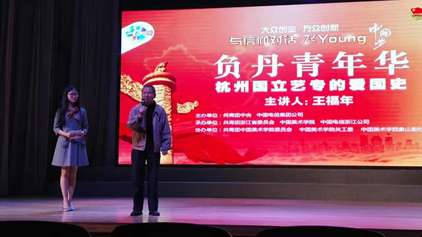 王福年教授为校史剧《负丹青年华》致辞,谈杭州国立艺专的爱国史