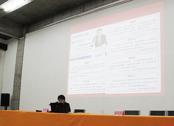 预备党员培训班由党委委员、宣传部部长傅巧玲,学工部副部长、学生处副处长、团委书记徐增鎏,离退休党总支组织委员兼第四党支部书记罗双全作专题党课。傅巧玲从历史、执政、战略三个视角全面解读了习总书记系列重要讲话精神,讲解了习总书记关于反腐倡廉的经典语录和十八大以来党在反腐倡廉方面的主要经验;徐增鎏向预备党员介绍了学校的社会实践和志愿服务项目,鼓励学员将理论知识运用到社会服务中去;罗双全对中国共产党取得的成就进行梳理,并解读了中国共产党的最终目标和现阶段任务;两位学生党员与全体预备党员分享了“时代•长征”暑期社会实践的经验和收获。