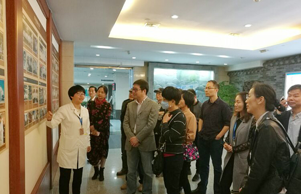 在省中医院院史馆,省中医院的院办王蓝玉主任向美院老师介绍中医院的发展历史。刘毅副主委看到院史照片,向我们介绍了浙江省中医院的第三任院长陈礼节先生也是浙江省民进的第一任主委,民进浙江省创会也是从省中医院开始的。
