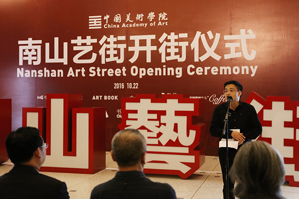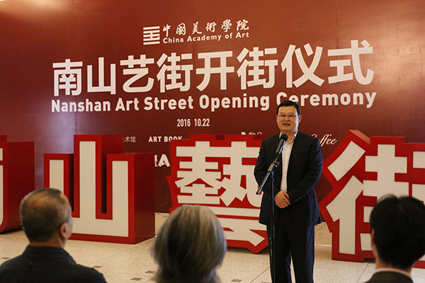 金承涛常务副区长在致辞中表示,中国美术学院是中国艺术教育最高学府,更是杭州市、上城区的金名片,在G20区间,中国美术学院参与的系列重要活动和成果大放异彩,收获极大的美誉度。“南山艺街”的正式开街,不仅使南山路艺术休闲街区更上台阶,同时为市民和游客艺术素养的提升和精神需求的满足提供良好的场所。上城区大力支持“南山艺街”的营造,共同联手中国美术学院为杭州“东方世界名城”的国际化建设进程贡献力量。