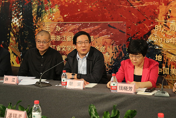 中共浙江省委宣传部常务副部长胡坚在交流会上指出,习近平总书记文艺工作座谈会重要讲话对文艺工作提出了很多新要求,赋予文艺工作者更多新的历史使命,要求艺术创作要真正为人民服务,为社会主义建设的繁荣发展服务。两年以来,浙江各界按照习总书记的要求进一步加强艺术创作的民族意识,中国美院在这方面做了很多的工作。