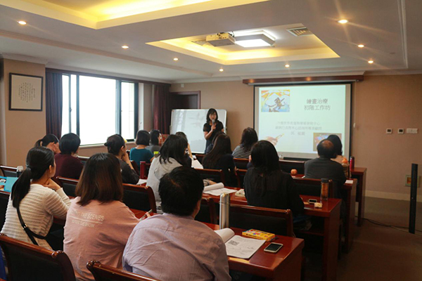 本次工作坊特别邀请来自台湾的资深表达性心理治疗专家邱敏丽老师主讲。邱老师结合理论、围绕个案,让工作坊的每一位参与者在聆听中轻松掌握绘画心理分析的主要操作技术;在实际体验中领悟到绘画者的任何一个涂鸦、画幅的大小、用笔的轻重、空间配置、颜色、涂抹等都在传递着他的情绪情感、人际关系、困惑冲突等。同时,通过绘画创作大家也进行了深入的内心探索和调整,更加了解了自我,促进了自我成长。