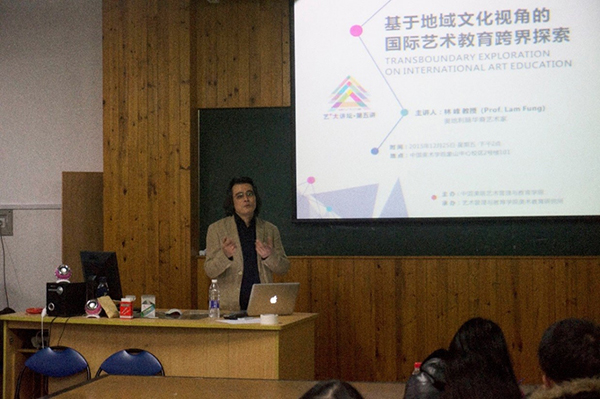 2015年12月25日,中国美院艺术管理与教育学院“艺+”大讲坛第五讲《基于地域文化视角的国际艺术教育跨界探索》在象山中心校区5号楼举行。本次讲座的主讲人为奥地利籍华裔艺术家林峰(Lam Fung)先生。讲座由艺术管理与教育学院王来阳老师主持。