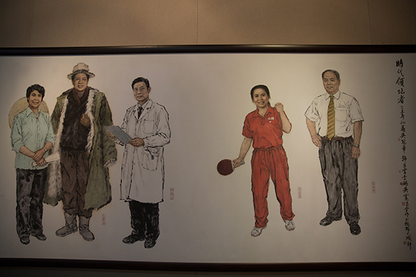 “时代领跑者”创作者代表杨参军、吴宪生、孙景刚、王赞等分别讲述了他们所带领的小组绘画背后的故事。他们均表示,了解到这个任务的重要性后,他们慢慢从起初的打怵,到在创作料资收集过程中深受震撼,到完成任务后的国博展出,再次审视时代领跑者群像,他们感受到了身为艺术家责任意识的重要性。