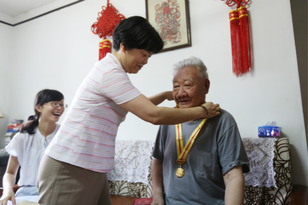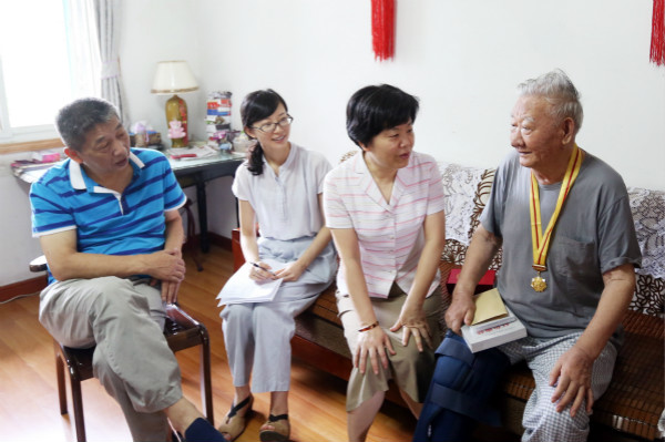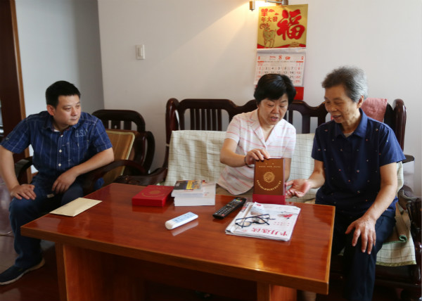 8月31日上午,校党委书记钱晓芳、党委委员、组织人事(统战)部部长应达伟及离退办工作人员一行走访慰问了我校抗战离休干部方明、李嵩及刘桂森同志家属,详细询问了老干部的思想、家庭、生活健康情况,送去中共中央、国务院、中央军委颁发的中国人民抗日战争胜利70周年纪念章、一次性慰问奖金以及《红色典藏—浙江抗日老战士的烽火人生》书籍和专题片光盘。