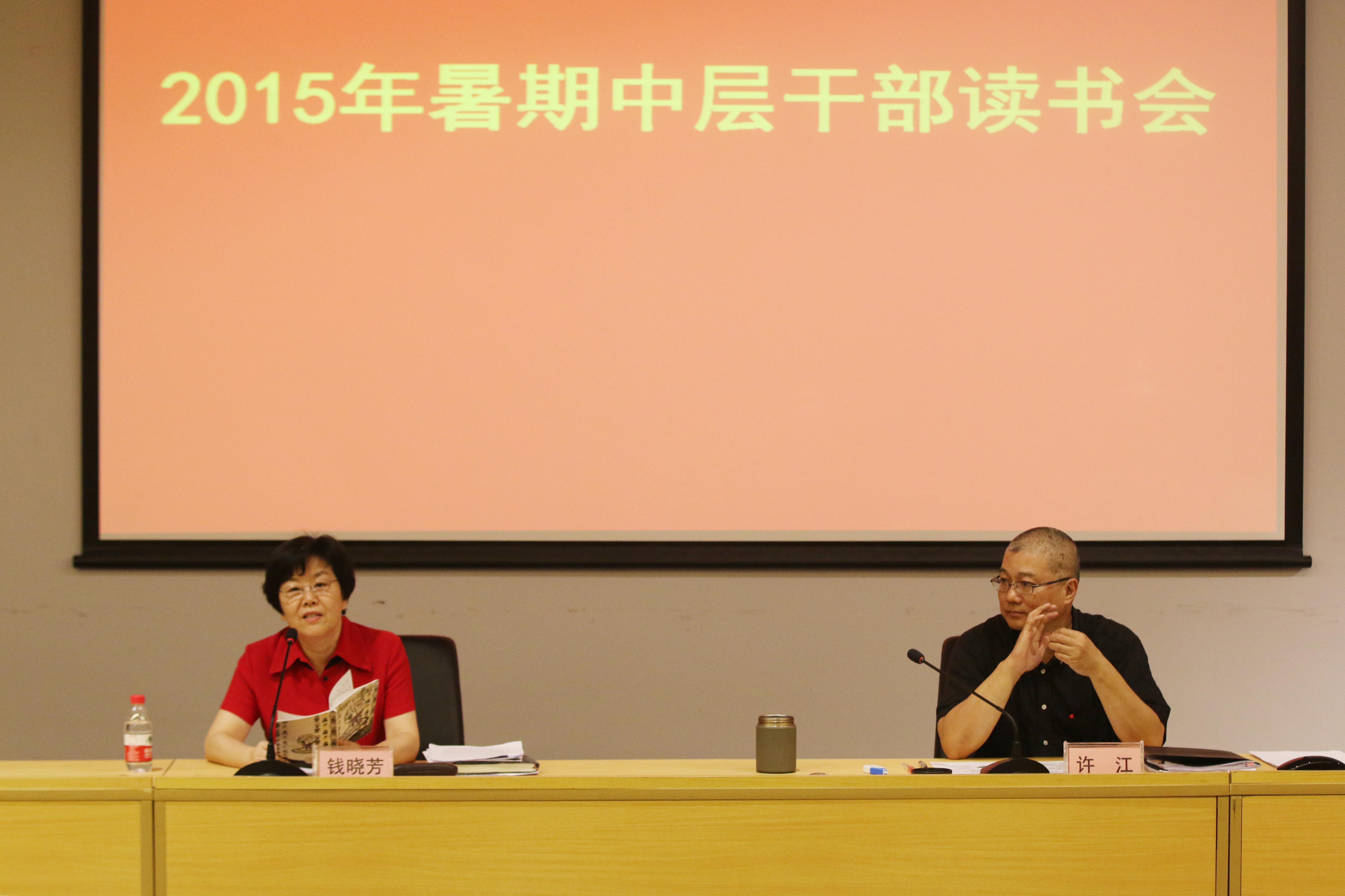 9月4日至5日,2015年暑期中层干部读书会在南山校区学术报告厅举行。学院党政领导和中层干部、民主党派负责人、二级学院院长助理,学院全资企业负责人参加会议。会上,院长许江作了专题讲话,十+学院等单位作了交流发言,党委书记钱晓芳作总结讲话。会议分别由党委书记钱晓芳、副院长王赞和院长许江主持。