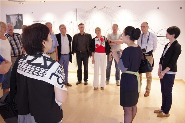 6月7日上午,德国温康纳机械制造有限公司董事长温康纳先生、德国MARTa美术馆馆长Roland Nachtigaller、德国Herford市长Tim Kahler、香港收藏家Daisy cheng、德国新威斯特法轮报社编辑HARTMUT BRAUN及德国企业家、艺术家、收藏家、美术馆馆长等65位知名人士来我院参观。