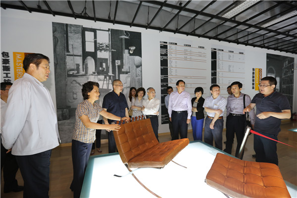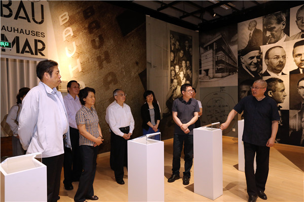 吴志明一行参观了中国国际设计博物馆临时展厅,杭间就馆内正陈列的展览“结构物:以包豪斯为核心的特色教育与变革”作介绍。展览以包豪斯师生作品为主线,并对包豪斯发生之前及国际主义风格的相关作品进行陈列,并辅以历史梳理、课程特色、工坊结构、教师学生时间线,帮助更多的设计同仁及对包豪斯感兴趣的公众深入了解“包豪斯”这所学校。同时,梳理了“以包豪斯为核心的西方近现代设计系统收藏”进中国的经过,对这批收藏的来龙去脉进行了详细的展示。