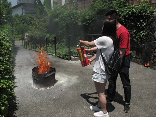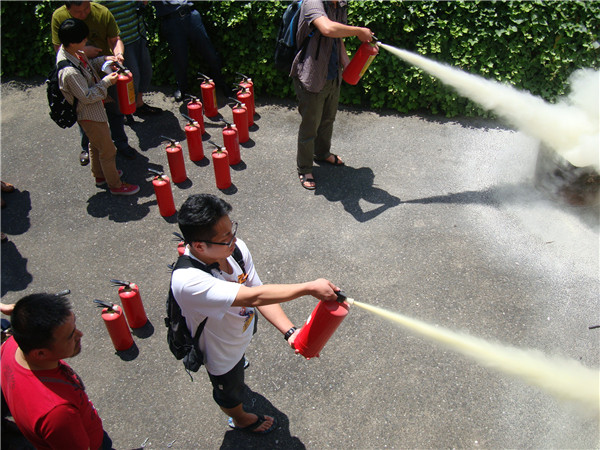 随后,在4号楼平台,保卫处老师就目前校园配置的各种型号的灭火器材的使用方法进行现场讲解和示范,接着传媒动画学院师生150多人积极参与了灭火实战演练。演练中,大家在保卫处老师的指导下,严格按照操作要求实施灭火。许多同学踊跃实践,基本上掌握了灭火器的使用方法及初起火灾的扑救方法。