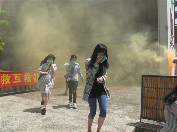 上午10点40分,院党委副书记刘正宣布演练活动开始,疏散演练在象山中心校区4号楼拉开了帷幕。伴随着急促的疏散哨声与现场的滚滚浓烟,近200名师生用湿毛巾捂住口鼻、躬身前行,快速有序的从教学楼中撤离,4分钟内全体师生疏散到安全地带,无人受伤。疏散演练结束后,刘正副书记对此次活动进行了讲评,强调全院师生员工要牢固树立“安全第一”的思想,切实增强防御自然灾害的能力,努力建设平安和谐校园。