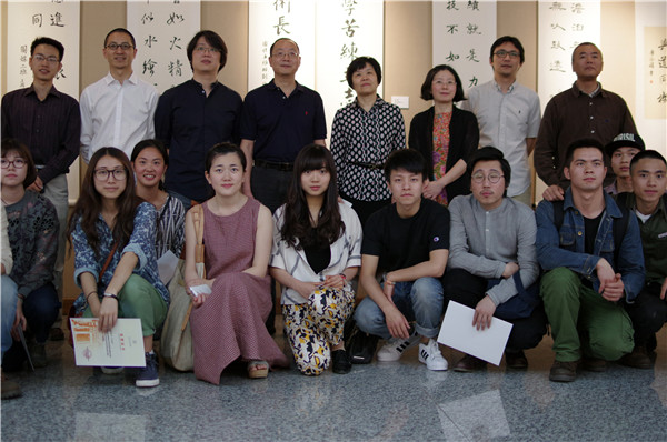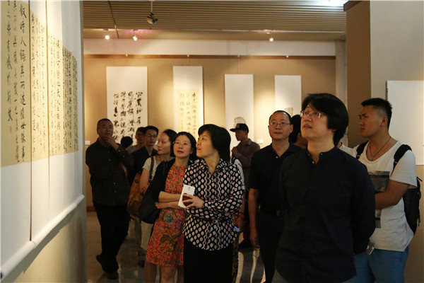 5月21日中午,由学院主办,院团委、书法系、专业基础教学部承办的中国美术学院首届书法节展览在中国美术学院南山校区陈列馆开幕。院党委书记钱晓芳、党委副书记胡钟华、纪委书记孙旭东等学院领导参观展览或出席了开幕式,院学工部、研工部、书法系、专业基础教学部负责人参加了活动。