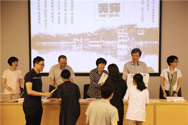 5月22日下午,中国美术学院第三期“美师讲习所”第四讲在南山校区学术报告厅举行,副院长宋建明做《“国美师道”与研创服务》专题讲座。会上,还举行了中国美术学院第三期“美师讲习所”结业式,党委书记钱晓芳做总结讲话,副院长宋建明、党委副书记胡钟华等为全体学员颁发结业证书。