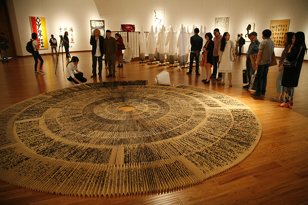 “书非书2015杭州国际现代书法展”汇集了20多个国家、100多位艺术家的作品,除了架上的现代书法探索之外,还包含了不少与书法有着明河暗道的影像、绘画、装置等实验性作品。文献展着重对1995年以来的现代书法与“书非书”展的相关事件、案例等进行了一定程度的梳理与研究。1995年国际现代书法双年展,2002年现代书法研究中心的成立,2005年第一届“书非书”展的艰难举办……这些文献记录了20年来围绕“现代书法”命题发生在学院内外的各种艺术事件。这两个展览在我院美术馆1楼到3楼进行集中展示。