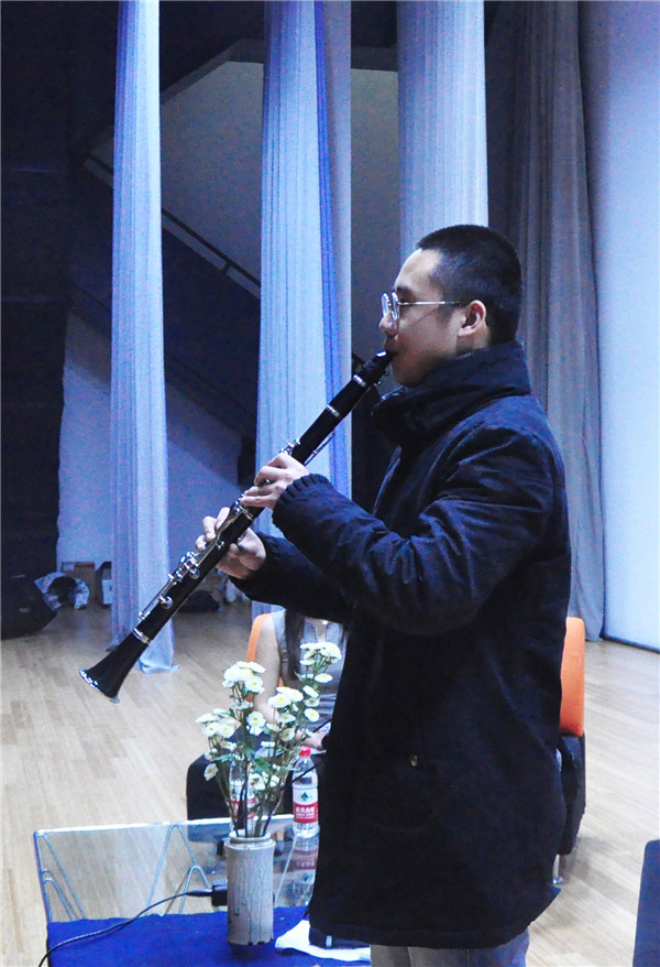 最后本次毕业生访谈会在王乾同学的单簧管乐曲表演中结束。
