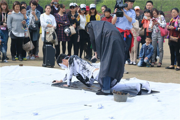 4月12日,中国美术学院公共艺术学院分团委学生会主办的公益行为表演---“侵蚀”在太子湾公园上演。