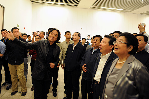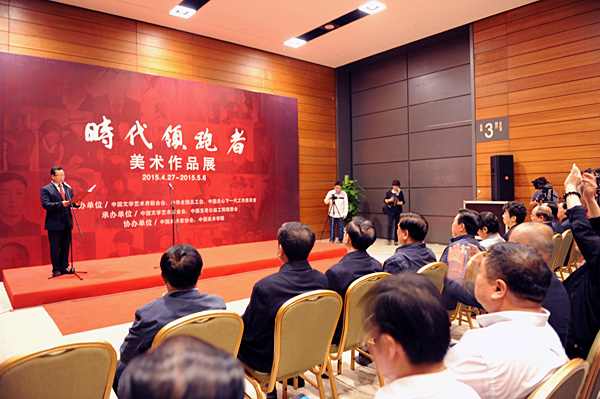 中国关心下一代工作委员会主任顾秀莲,中国文联主席孙家正,中国文联党组书记、副主席赵实,全国政协教科文卫体委员会副主任、中国文学艺术基金会理事长胡振民,最高人民检察院原党组副书记、常务副检察长、中国检察官文联主席张耕,中国文联党组成员、副主席左中一,全国总工会党组成员、经费审查委员会主任李守镇,中国五老公益工程组委会主任李牧,中国国家博物馆馆长吕章申,中国文联党组成员、主席团委员兼办公厅(计划财务部)主任陈建文,中国文联副主席、中国美协主席刘大为,中国文学艺术基金会副理事长兼秘书长冯双白等,全国劳动模范代表包起帆、郭凤莲、彭隆荣、智呼声、时传祥的大女儿时俊英、小女儿时玉华等,艺术家代表我院副院长王赞、国画系教授吴宪生、油画系教授何红舟等,以及各界嘉宾媒体共200余人出席了展览开幕式。开幕式由冯双白主持。刘大为、左中一、包起帆、王赞先后致辞。