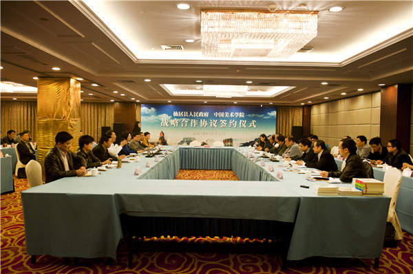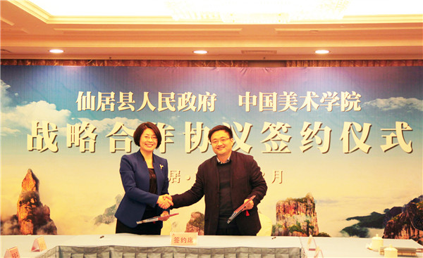 3月20日,中国美术学院与仙居县人民政府战略合作框架协议签约仪式在仙居县召开。原中国美术学院党委副书记傅肃琴、副院长姜玉峰,科研创作处、城乡统筹综合研究院、资产经营有限公司、党院办、设计艺术学院相关负责人及创意设计团队,仙居县县委书记单坚,县委副书记、县长林虹,县领导班子部分成员、县委办、县府办、县委政研室、组织部、宣传部等相关职能部门及各乡镇区主要负责人出席签约仪式。会议由陈红雷主持。