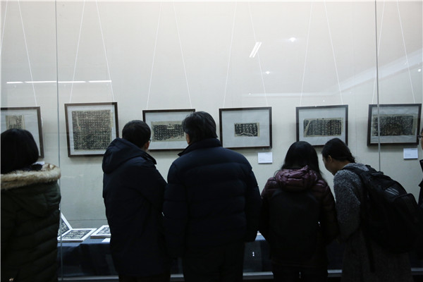1月6日下午,中国美术学院2015新年古文献展——“艺坛古韵:中国美术学院图书馆藏古籍拓片展”在学院南山校区美术馆举行。展览由学院图书馆、美术馆联合举办,共展出拓本、印谱、金石学、书画论、画谱、曲谱、诗集、词集、文字学等馆藏古籍精品96种330余册,经典碑刻拓片58幅。相关学术讲座活动于1月7日在南山校区学术报告厅举行。