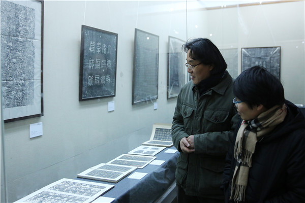 1月6日下午,中国美术学院2015新年古文献展——“艺坛古韵:中国美术学院图书馆藏古籍拓片展”在学院南山校区美术馆举行。展览由学院图书馆、美术馆联合举办,共展出拓本、印谱、金石学、书画论、画谱、曲谱、诗集、词集、文字学等馆藏古籍精品96种330余册,经典碑刻拓片58幅。相关学术讲座活动于1月7日在南山校区学术报告厅举行。
