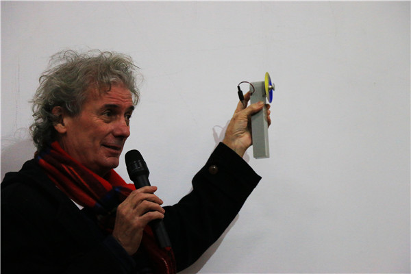 面对如今设计界乃至世界全球的巨大变化,伊夫•沙赫内教授亦有自己独到的色彩人文情怀。讲座的过程中时常呈现着他所做的装置艺术、色彩艺术成果,令人逐步发现这些不同于人们惯性思维中的“装饰”艺术,它们已不再是作为一种景观“装饰”而存在了,每件艺术品里都涵盖着伊夫•沙赫内教授对科技、历史、哲学、心理学等人文特质的思考与理解,正如他所说的“客观存在的色彩是不一样的,但都是在一个统一体里的,而在社会与政治中也是如此,本应是统一和谐的”,也正如宋建明副院长所说的“对于艺术设计专业来说,色彩与造型只是作品的一部分,最为重要的还是当中的灵魂,人文发展以及科学智慧,通过多种创造手段达到造境,否则将沦为装饰专业而非智慧专业”。