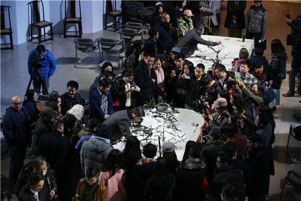 在36位参展艺术家中,既有白发苍苍的画坛耆宿,又有在全国美展崭露头角的学院新锐,甚至还包括了两位曾在中国美院学习十余年之久的两位外籍优秀山水画家,更多参展艺术家是在目前中国画画坛中居于中坚力量的一流的中青年画家。杭州·中国画双年展组委会执行主任、艺术总监、中国美术学院院长许江提出了第三届杭州中国画双年展的学术目标,即“梳理册页的绘画脉络,检省册页的形式生机,活化册页的品读世界,再兴册页的日课传统”,并赋予了展览主题“辑页掇英”以丰富的学术内涵和文化属性,将整个展览分为“玄览蝶环”、“思纷群化”、“书简日课”三个主题模块,以参展作品的不同形制和内涵意蕴进行详细解读。许江认为,中国画双年展的平台模式在一定程度上克服了目前国内某些展览机制带来的弊端,起真正的意义在于整塑我们的绘画研究,激发我们的创新力量。双年展的形式能够使我们从中国绘画的观看、绘制、交流的基本方式着手,来重建中国绘画的生态,暂时撇开一些表面的语言之争,回到一个更根源性的生活层面上复活当年中国画产生的形式基因。他对双年展的创作和展览寄予了深刻的期许。