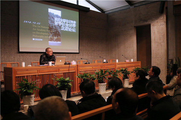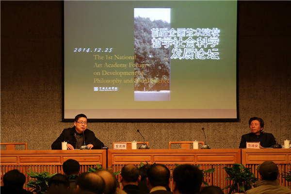 12月25日,由国家教育部主办、中国美术学院承办的首届全国艺术院校哲学社会科学发展论坛在我院象山校区水岸山居隆重举行。教育部社会科学司司长张东刚、文化部艺术司副司长刘咏梅、中共浙江省委教育工委副书记鲍学军出席开幕式并讲话。开幕式由我院党委书记钱晓芳主持。中央美术学院院长范迪安、我院党政领导许江、宋建明、胡钟华、王赞、刘正、院长助理杭间以及来自全国各地的64所艺术类或综合性高校的领导和专家参加论坛。