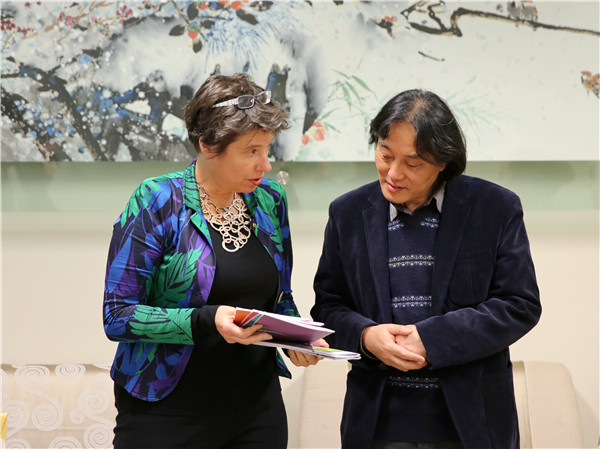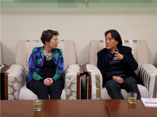 会谈过后,王赞副院长陪同Brussaard院长一行参观了杭州国际陶瓷双年展。出身陶艺专业的Brussaard院长对展览大加赞赏,表示这是她见过的最精彩的展览之一。