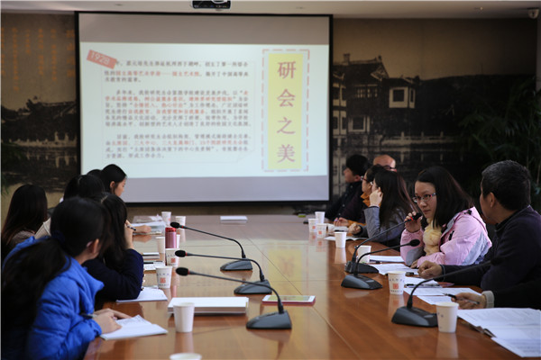 寒冷的天气挡不住研会成员们的热情,会上新老成员踊跃发言,从风趣幽默的自我介绍到为研会发展奉献智慧和汗水的决心,展现了积极向上的整体精神风貌。毛建波老师从我院校史入手,首先强调研究生加强自我管理的重要性,不同专业方向的研究生应该相互了解、相互配合,切实提高自我教育、自我管理、自我服务的能力,促进多学科、跨专业之间的互动交流。其次,他指出我院研究生会在举办高端学术活动方面的使命和作用,“大家要有高峰意识,深度挖掘,重点培育,组织一系列高水平的展览、讲座、论坛、研讨会等学术活动,通过各专业的相互碰撞与交融带动更多创新与机遇,实现学术价值与活动影响力的双赢,引领高端学术风尚。”毛老师对研会新成员们寄予了厚望,“希望我们开创的精品活动在全国的美术院校中起到先锋模范作用,没有‘之一’,充分发挥领先优势。”