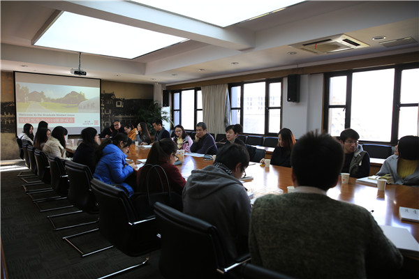 12月5日,校研究生会2014级新成员见面会在南山校区8号楼3楼会议室成功举行。研究生处处长、研工部部长、学科建设办公室主任毛建波,研究生处副处长、研工部副部长江河、研究生处陶非奇及研究生会新老成员出席此次会议。三位老师围绕研究生会的组织架构、工作宗旨、未来发展方向等问题对2014级研究生会新成员提出了期待和要求。
