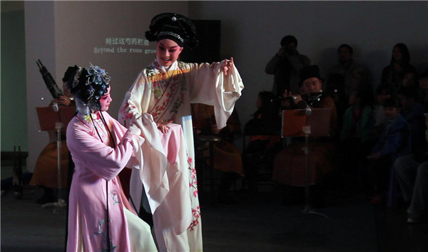 一开场,浙江昆剧团的演员们首先为观众呈现了体验版《牡丹亭》的其中两折,为了保证效果,此次片段演出并无任何音响设备,但并没有受到影响,演出十分精彩。演出现场,美术馆展厅里三层外三层挤满了人,很多观众站着看完了演出。