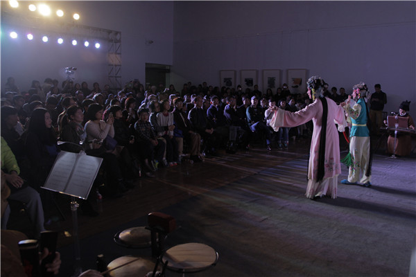 11月14日晚,由中国美术学院党委宣传部联合御乐堂主办、中国美术学院美术馆协办的西湖论艺第18讲特别演出暨美术馆之夜——众说纷纭《牡丹亭》在美术馆二楼方厅开幕。浙江昆剧团带来了经典剧目《牡丹亭》中的“游园惊梦”“冥判”两折,传神的表演赢得了阵阵掌声。中国著名昆剧表演艺术家、浙江省昆剧团团长林为林先生,体验版《牡丹亭》总策划程俊先生和中国美术学院油画系焦小健教授,就昆曲艺术的传承和创新方面问题展开了对话。论艺现场,党委副书记胡钟华代表许江院长向几位嘉宾赠送了许院长最新作品《葵园手札》。论艺由宣传部金晓依老师主持。