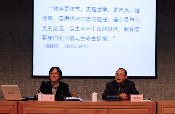 方展画教授在讲座中对中西教育理念和育人模式进行了比较,对我国当前教育存在的问题进行了深入分析,同时就转变教育思想和教育观念、更新教育理念转换育人模式等进行了阐述。方展画教授说:我国教育过分注重“教”,强调对系统知识的传授,而忽视了“育”,弱化了育人功能,不利于创造性人才的培养。我们要转变育人理念和培养模式:从关注系统知识的传授转变到“育人”方面来,在教育的发展中要将“建筑学”的理念转变为“生物学”的理念;要创造条件,回归自然,培养学生的兴趣和信心,给学生提供营养,鼓励学生探索创新。他认为艺术教育是影响当前注重知识教学和人才培养的理念和方法,值得研究和深思。方展画教授的讲座深入浅出,以高深的理论和生动的事例,让大家深受启发。