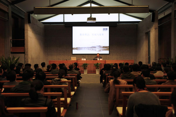 11月20日,我院第二期 “美师讲习所”在象山校区水岸山居大会议室开讲,副院长王赞和浙江省教育科学研究院院长、浙江大学教授方展画作客“美师讲习所”,分别带来《中国美术学院教学改革与思考》和《教育理念:传统与变革》的讲座。讲座分别由党委副书记胡钟华和副院长王赞主持。来自各院系的青年教师学员150余人听取了讲座。党委书记钱晓芳出席并听取讲座。