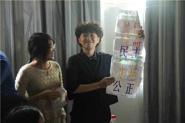 当天下午,为响应团中央走下网络、走出宿舍、走向操场的“三走”活动号召,弘扬社会正能量,在大学生喜闻乐见的户外运动方式中走进社会主义核心价值观,读书会开展了“奔跑吧,青年——我为核心价值观代言”主题团队互动活动,在积极转化负能量、保护社会主义核心价值观正能量的象征互动游戏中,引导大学生积极为核心价值观代言,弘扬健康积极向上思想文化。