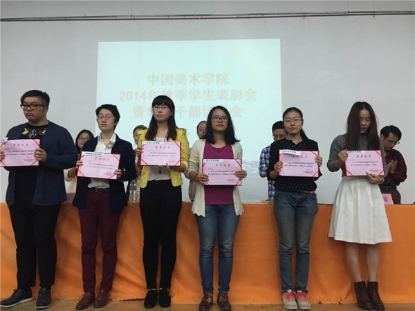 会议还表彰了2014年浙江省大学生艺术展演、学院暑期社会实践的获奖个人和集体。会上,暑期社会实践优秀带队教师、建筑艺术学院钱晨、暑期社会实践先进个人、公共艺术学院于洋、建筑艺术学院暑期绿城优秀实习生忻洁瑜等分别分享了社会实践成果和感受。