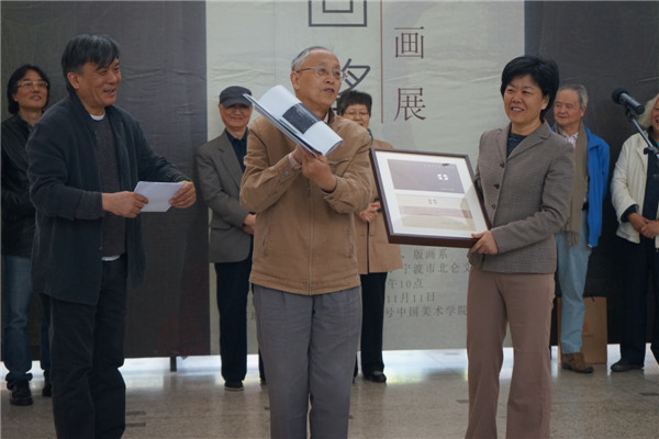 11月4日上午,“版途回望——俞启慧版画艺术展”在学院美术馆开幕。我院院党委书记钱晓芳、原党委书记毛雪非、浙江省版画家协会会长、原副院长赵宗藻、党委副书记胡钟华、院副院长王赞、中国美术家协会版画艺委会副主任、原版画系主任张远帆、版画系主任孔国桥、省政协诗书画之友社副秘书长王跃、宁波北仑文广新局局长乐静毅、中国海洋博物馆馆长冯毅,著名艺术家吴山明、章祖安、张嵩祖、谭尚忍、韩黎坤、甘正伦、朱维明、陈聿强、李以泰、于保勋、陈海燕等,以及新闻媒体的朋友、俞启慧教授的师友亲朋出席开幕式。开幕式由我院美术馆副馆长杨劲松主持。开幕式上王赞、赵宗藻、孔国桥先后讲话,俞启慧先生的学生代表洪复旦发言,俞启慧先生致答谢词。开幕式还举行了捐赠仪式,俞启慧教授精选出34套代表作及授课挂图和讲稿等,无偿捐献给学院美术馆,成为学院珍贵的研究和教学资源,钱晓芳书记代表学院接受捐赠并颁发收藏证书。
