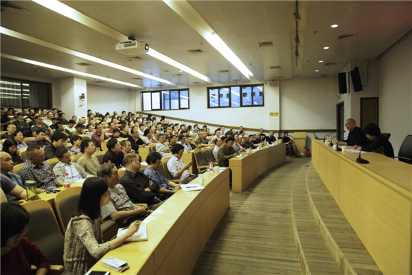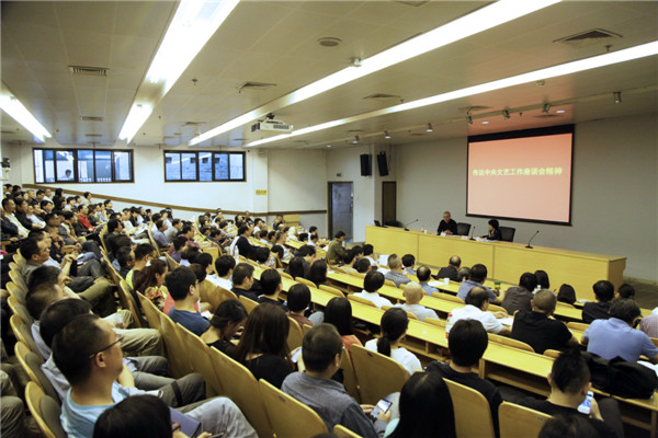 10月20日下午,我院在南山校区学术报告厅举行报告会,邀请从北京参加会议回来的许江院长传达习近平总书记在中央文艺工作座谈会上的讲话精神。全体党政领导班子、中层干部、在职教授、博导、学术骨干、学科带头人 、两课教师、优秀青年教师、中层后备干部等参加了报告会,报告会由党委书记钱晓芳主持。