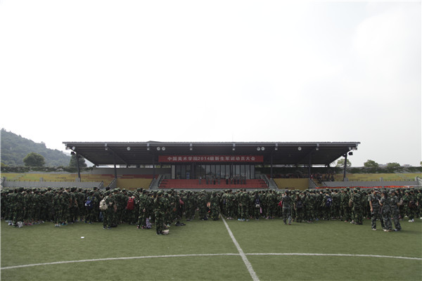 9月17日下午,中国美术学院2014级新生军训动员大会在象山校区山北体育场举行,军训团政委、党委副书记胡钟华,军训团团长、帮训部队负责人刘富和有关部门负责人以及团部干事、各营教导员、各营指导员以及2014级全体参训新生参加动员大会。大会由副参谋长竺照轩主持。