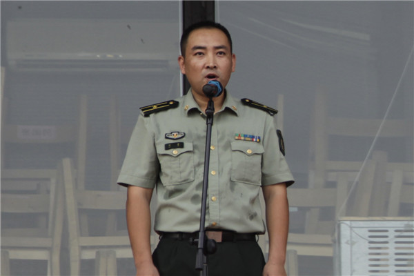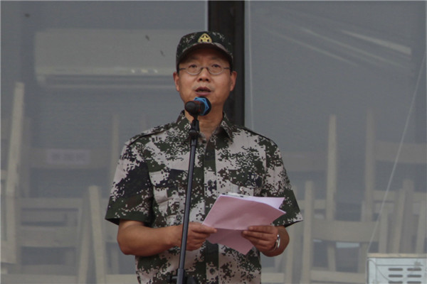 军训团团长、帮训部队负责人刘富结合我国屈辱的历史和当今国际形势阐述了国防建设的重要意义以及国家对大学生军训的明确要求。他强调大学生在军训重要树立、国防意识、安全意识、纪律意识。他表示,参训部队教官将按照上级要求,严格施训、文明施训,认真完成军训任务。
