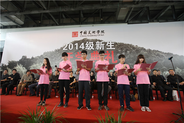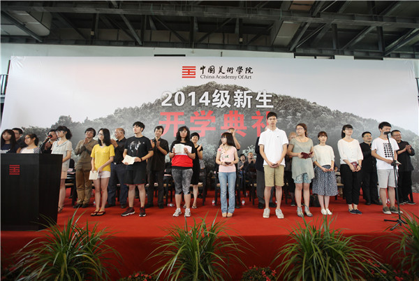 开学典礼上副院长王赞宣读了《中国美术学院关于表彰2014级新生奖学金获得者的决定》,学院领导为获奖的47名新生奖学金获得者颁奖。