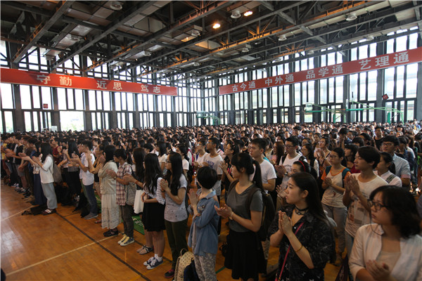 9月17日上午,2014级新生开学典礼在象山中心校区八号楼体育馆隆重举行。我院党委班子成员钱晓芳、许江、宋建明、傅肃琴、胡钟华、王赞、孟云生、姜玉峰及各职能部门和教学单位负责人出席典礼,2014级2000多名新生参加了开学典礼。德国海德堡大学教授雷德侯教授,牛津大学副校长杰西卡·罗森教授作为特邀嘉宾也一同参加了典礼。典礼由党委副书记胡钟华主持。