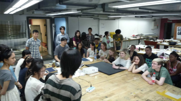 5月23日上午,版画系的实验室来了一群美国学生,他们是由恩迪∙波斯克维克(Endi Poskovic)教授带领的11位美国密西根大学的同学。