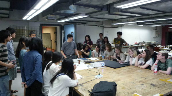 课程在中美同学的自我介绍中开始,水印版画以及中国书籍的魅力深深地吸引了同学们专注的眼光。课后,年轻人相互攀谈起来,生疏的英语和手势无法阻碍年轻人交流的愿望。中国同学向美国同学介绍自己的课程和实验室的情况,同时也好奇地询问美国学生的生活和学习情况。中国同学还带美国同学参观了南山校园。