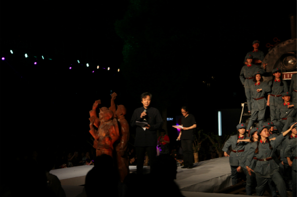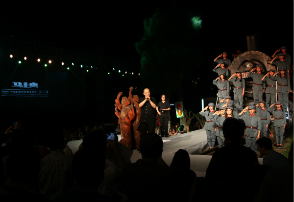 5月27日晚19:00,马上火——中国美术学院2014年毕业创作展在象山校区水岸山居火车旁盛大启幕。昏黄的灯光与身穿红军服装的青年化为具有历史感的雕塑,伴着鼓点手握书卷向理想冲锋,带我们回到了那个热血年代;火车的轰鸣,绚丽灯光与音响的完美结合共同打造了一场别出心裁的视觉盛宴,带来了强烈的艺术震撼。毕业创作展示周犹如一架蓄势启动的引擎,注入的是青春的光和热,驱动的是面向未来的艺术人生。